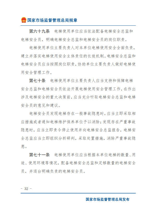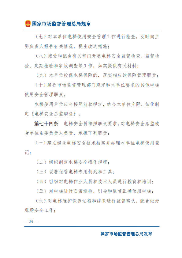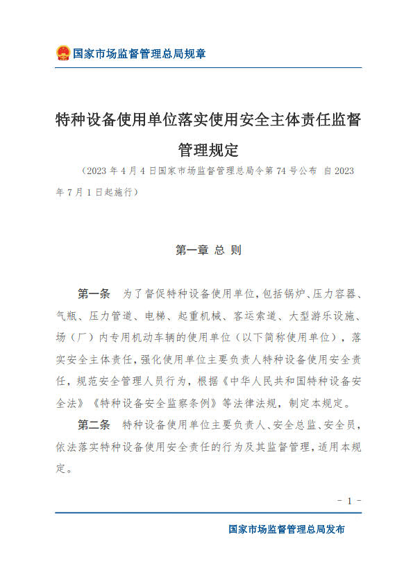 國(guó)家市場(chǎng)監(jiān)督管理總局令第74號(hào)特種設(shè)備使用單位落實(shí)使用安全主體責(zé)任監(jiān)督管理規(guī)定(2023年4月4日國(guó)家市場(chǎng)監(jiān)督管理總局令第74號(hào)公布 自2023年7月1日起施行)