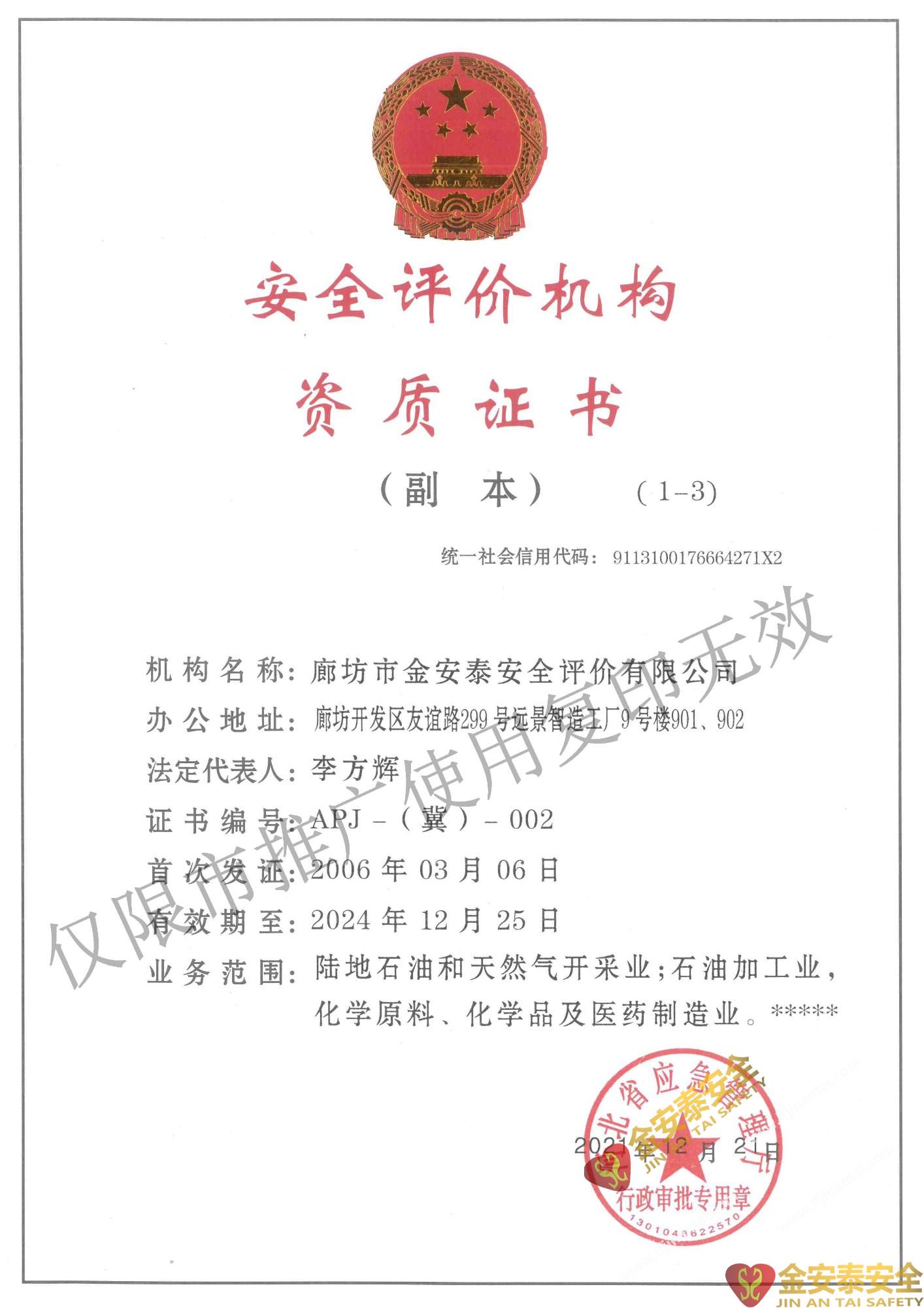 公 司:廊坊市金安泰安全評價(jià)有限公司